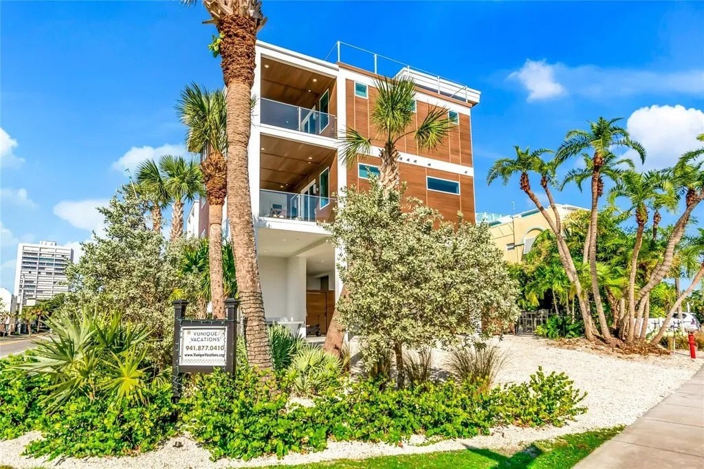 Effortlessly close to everything yet a world apart, The Lookout on Siesta Key embodies the essence of the Vunique Homes experience-architectural artistry, intentional design, and a lifestyle defined by affluence and ease. Soundly constructed by Eason Builders Group in 2025, this marvel is an innovative fusion of durable details, resilient materials, and groundbreaking engineering to achieve luxury and longevity. Steps from Siesta Key Beach and the vibrant Siesta Village, this residence is ideally positioned for those who value connection as much as privacy. From fine dining and boutique shopping to the energy of downtown Sarasota and the tranquility of the Gulf, every facet of coastal living is within reach. Curated for those who entertain and impress, the home's outdoor environment rivals the world's best resorts. The ground floor offers recreation and relaxation with the heated saltwater pool and spa, bar, dining & seating areas, putting green, and waterslide add texture and rhythm to the experience. The first and second levels, elevated over the private, 6 car parking area, boast over 4,500 square feet of refined modern living. A chef's kitchen anchors the great room, framed by soaring ceilings and expansive glass that erase the boundaries between indoors and out. The media room, complete with theater seating and wet bar, offers an elevated space for leisure and connection. With five ensuite bedrooms, seven baths, and designer finishes throughout, this home was created for the connoisseur who demands excellence without compromise. Host effortless gatherings under the sun or stars on your rooftop terrace with Gulf views, a full bar, multiple TVs, and covered alfresco dining. From sunrise to sunset, your moments are uniquely your own. Purpose-built for luxury living and strong rental performance, it represents the rare opportunity to own not just a home-but a legacy on Siesta Key.